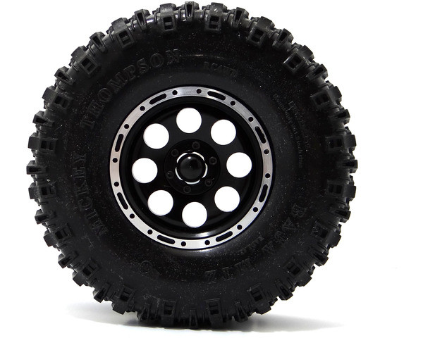 24 or 26 mm touring car tires or 1.9 truck tire. Use ca glue to glue tires to wheels.